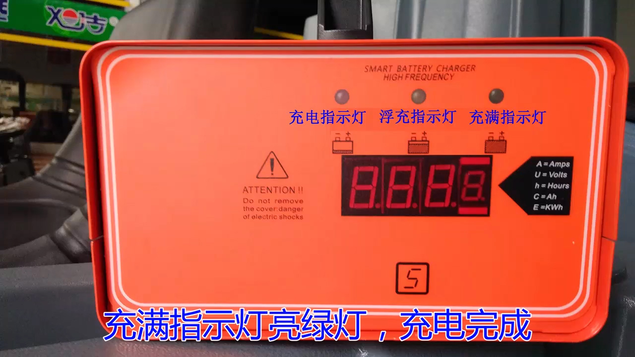6.充滿指示燈亮綠燈,充電完成